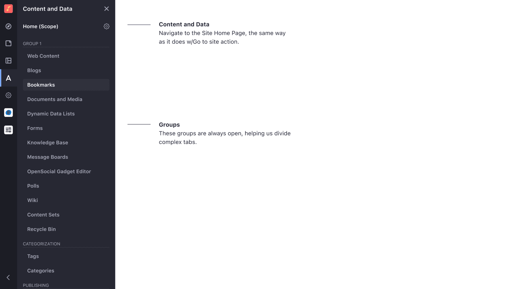 One difficult tradeoff in the moment was cutting a custom menu builder and instead implementing a way for site admins to enable the new nav at the pace of their organization.